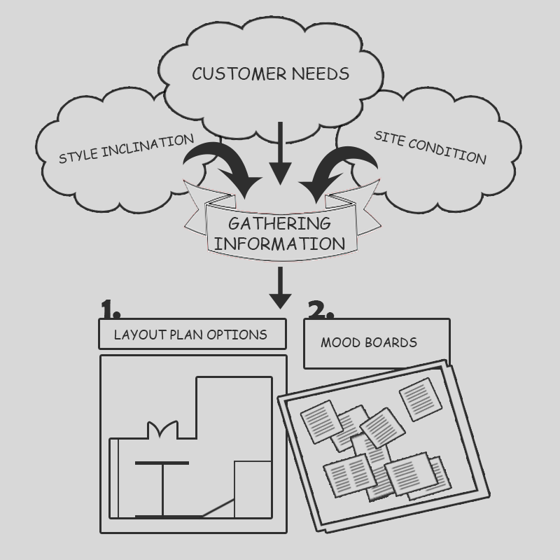 We expect to meet you once to understand your style inclination and function requirements. A second meeting is required to present the Layout Plan and Mood-boards. We will move to next phase once you approve the same.